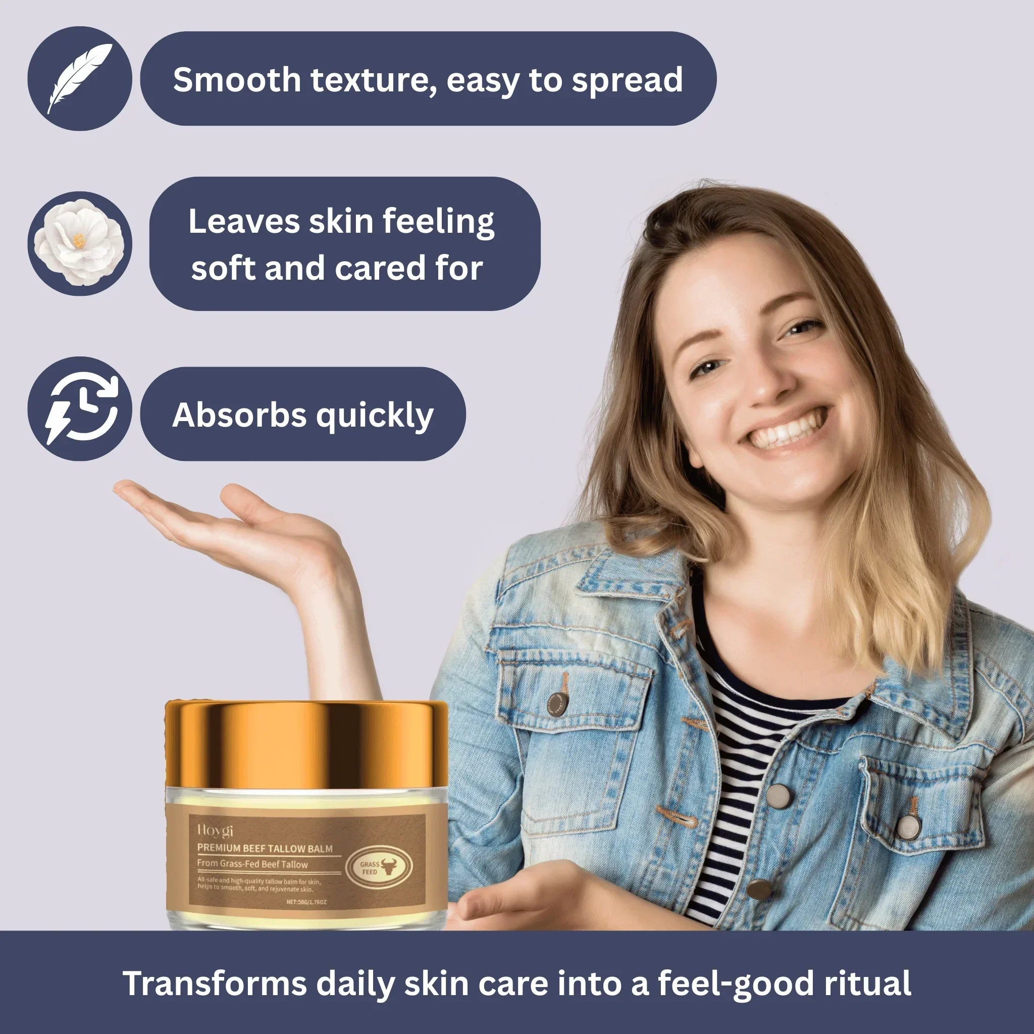 The Premium Beef Tallow Balm is your versatile companion for face and body, perfect for both men and women.