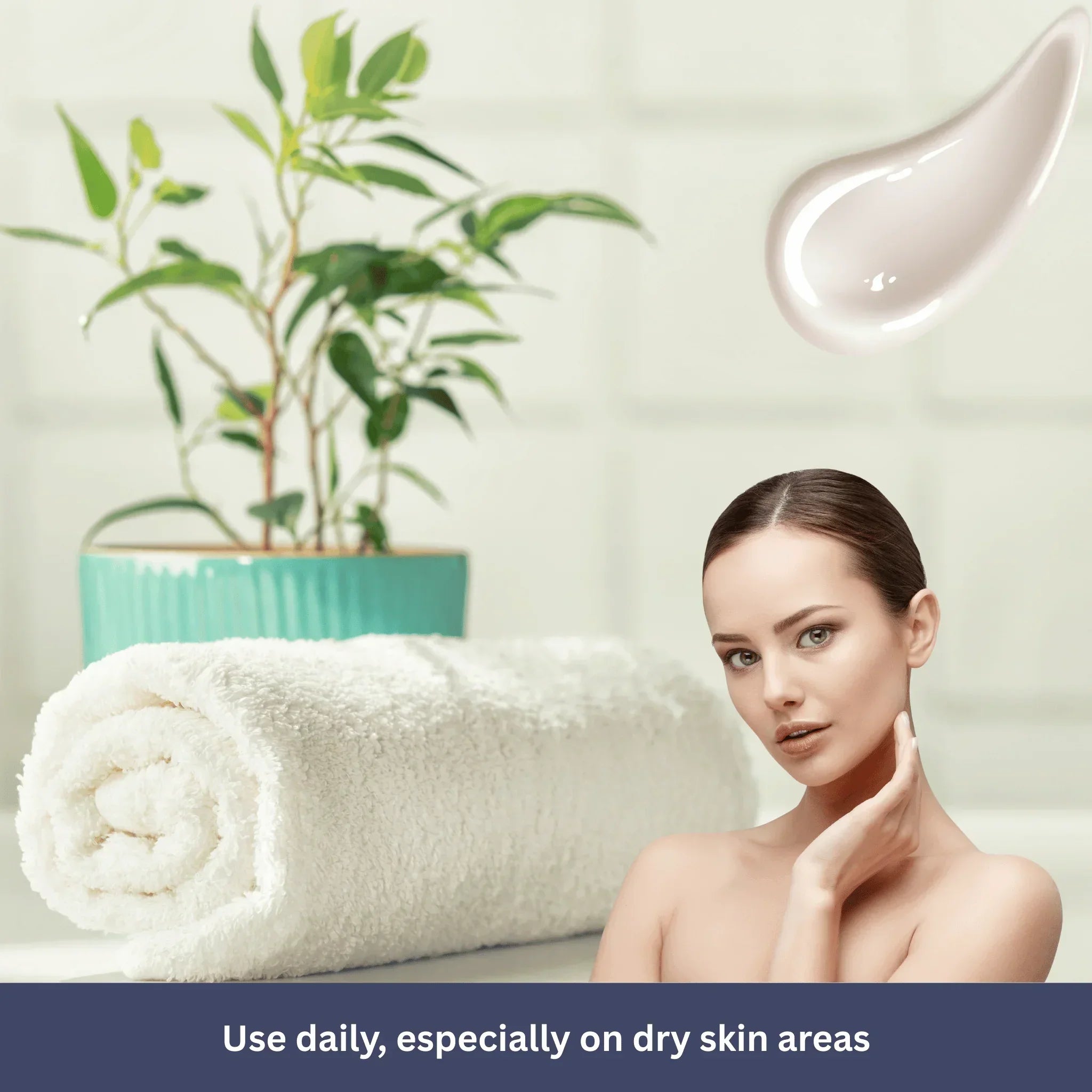 Use it daily, especially on dry areas, to maintain a consistently healthy skin appearance.