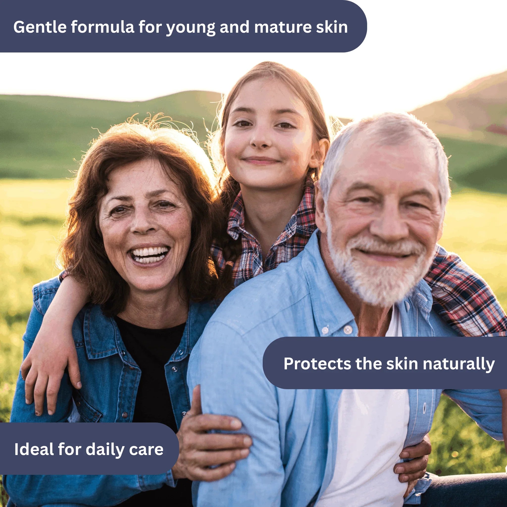 The gentle formula is suitable for young and older skin, for sensitive or resilient skin, and for the whole family.
