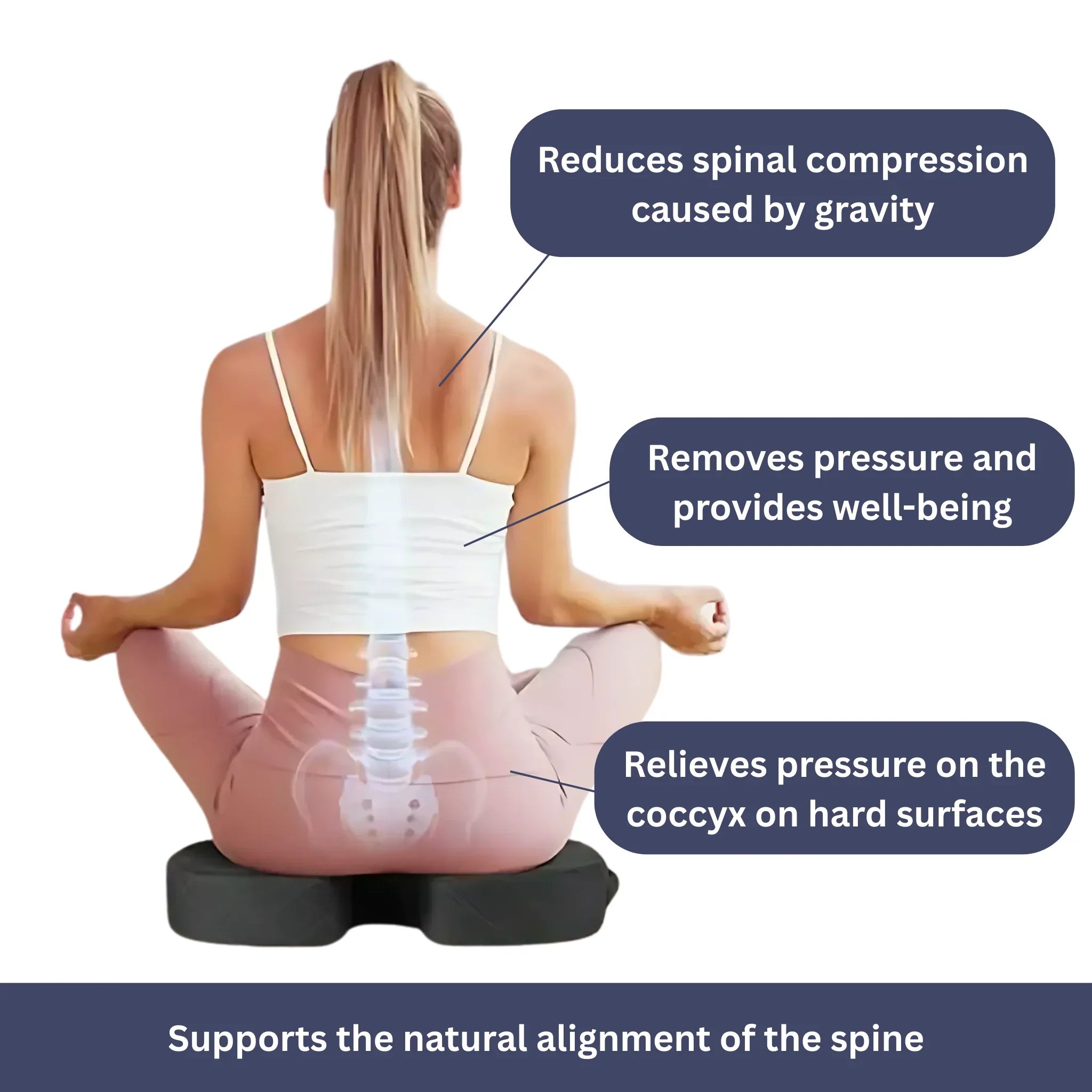 The U-shaped tailbone cutout reduces pressure on the sacrum and supports the natural alignment of the spine.