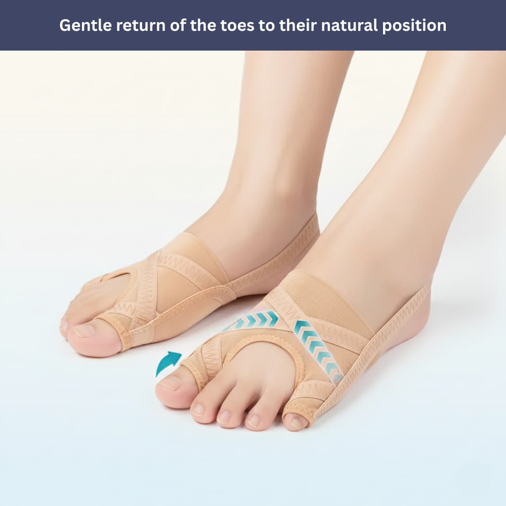 This helps correct misalignment, reduce pain, and improve overall foot alignment during daily activities, in shoes, or while resting in bed.