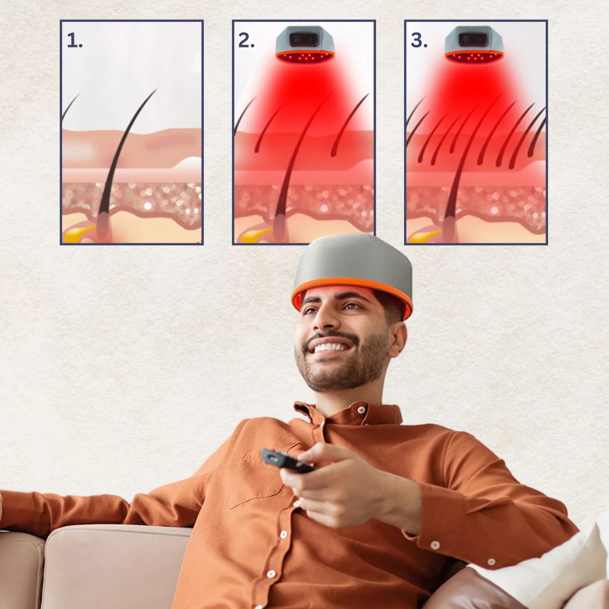 The HairRevive Light Therapy Cap uses advanced red light and infrared technology to penetrate deeply into the scalp and stimulate hair follicles for fuller and healthier hair.