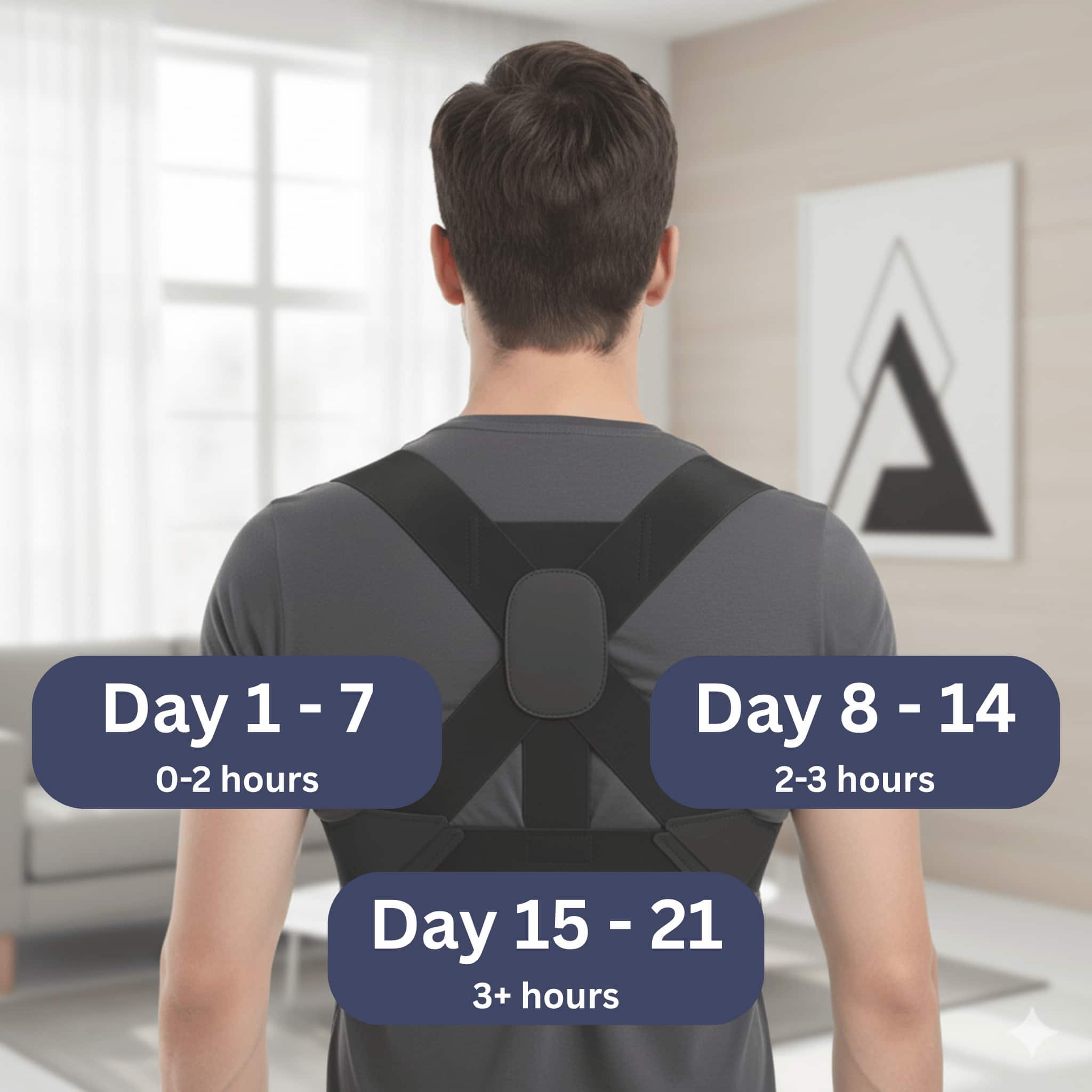 Start with short wearing sessions and keep the straps slightly loose so your spine can gradually adjust to the correct posture.