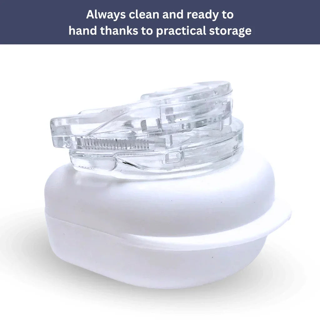 This innovative mouthpiece gently opens the airways, reduces disruptive snoring, and protects against teeth grinding – for a restful night’s sleep and a noticeable improvement in your sleep quality.