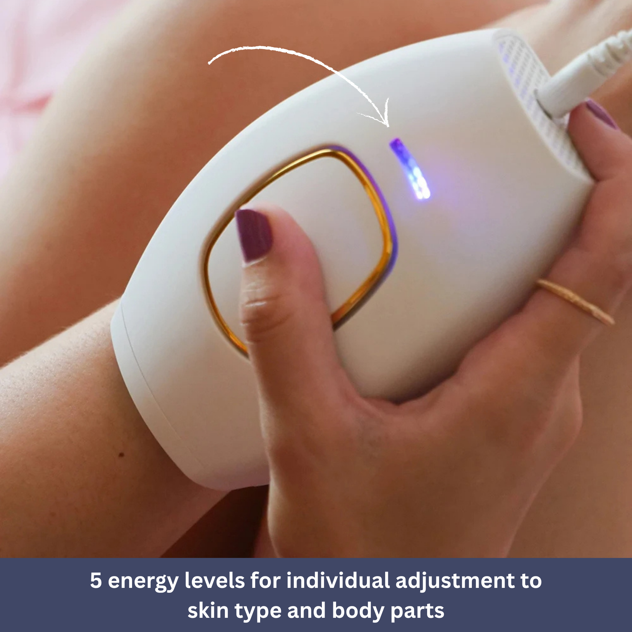 The device features five adjustable intensity levels, allowing you to tailor the treatment to your skin type and the sensitivity of the area being treated.