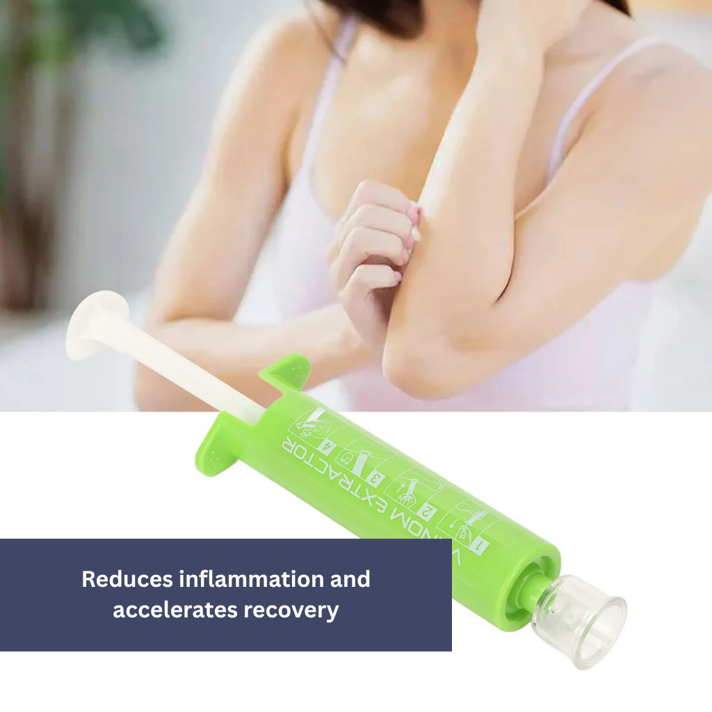 The VenomExtractor suction pump provides a chemical-free solution for insect bites.