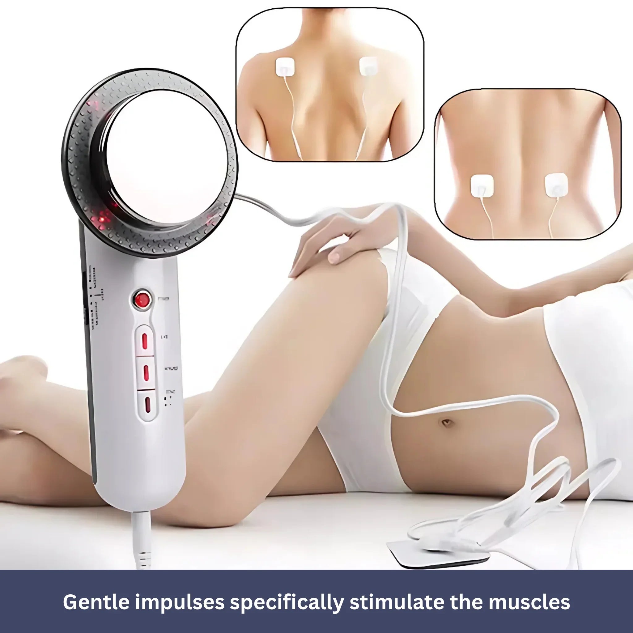 Gentle impulses activate your muscles, boost fat metabolism, and strengthen the tissue.