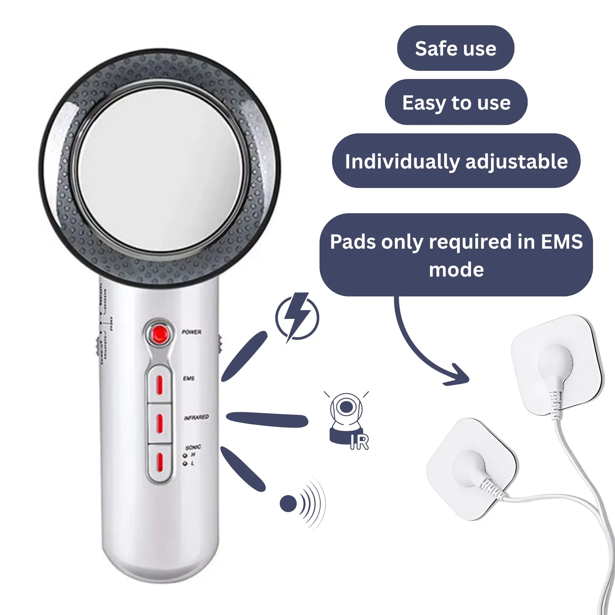 Yes. The ultrasound mode works without electrode pads, while for EMS mode you need to properly attach the included pads. Make sure your skin is clean and the device is used directly on the desired area. The intensity can be adjusted individually.