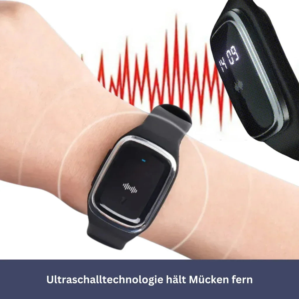 Dieses innovative Armband nutzt fortschrittliche Ultraschalltechnologie, um stechende Mücken abzuwehren, ohne den Einsatz von Chemikalien.