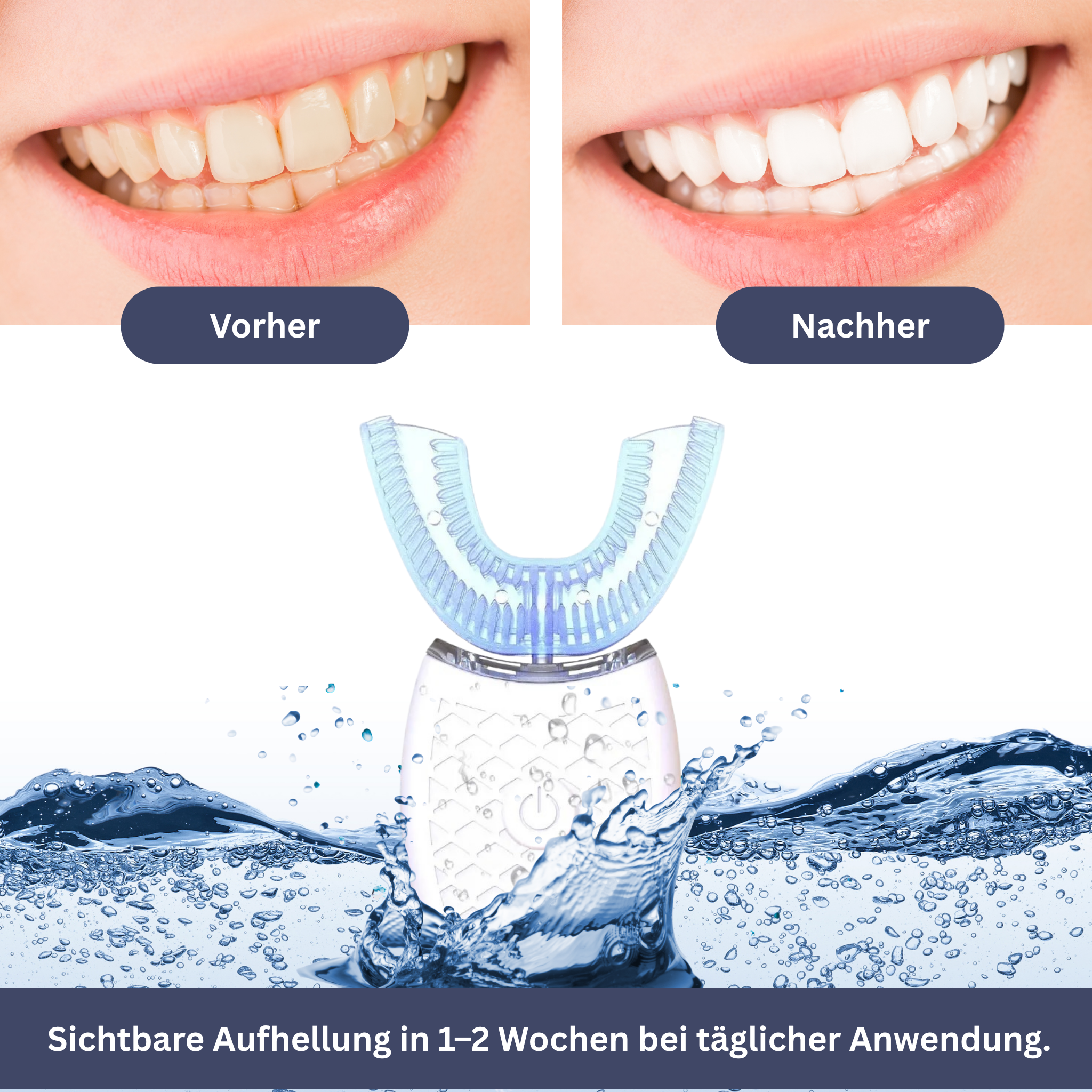 Der innovative U-förmige Bürstenkopf umschließt deine Zähne und reinigt alle Oberflächen gleichzeitig in wenigen Sekunden – für professionelle Ergebnisse ganz ohne Aufwand.