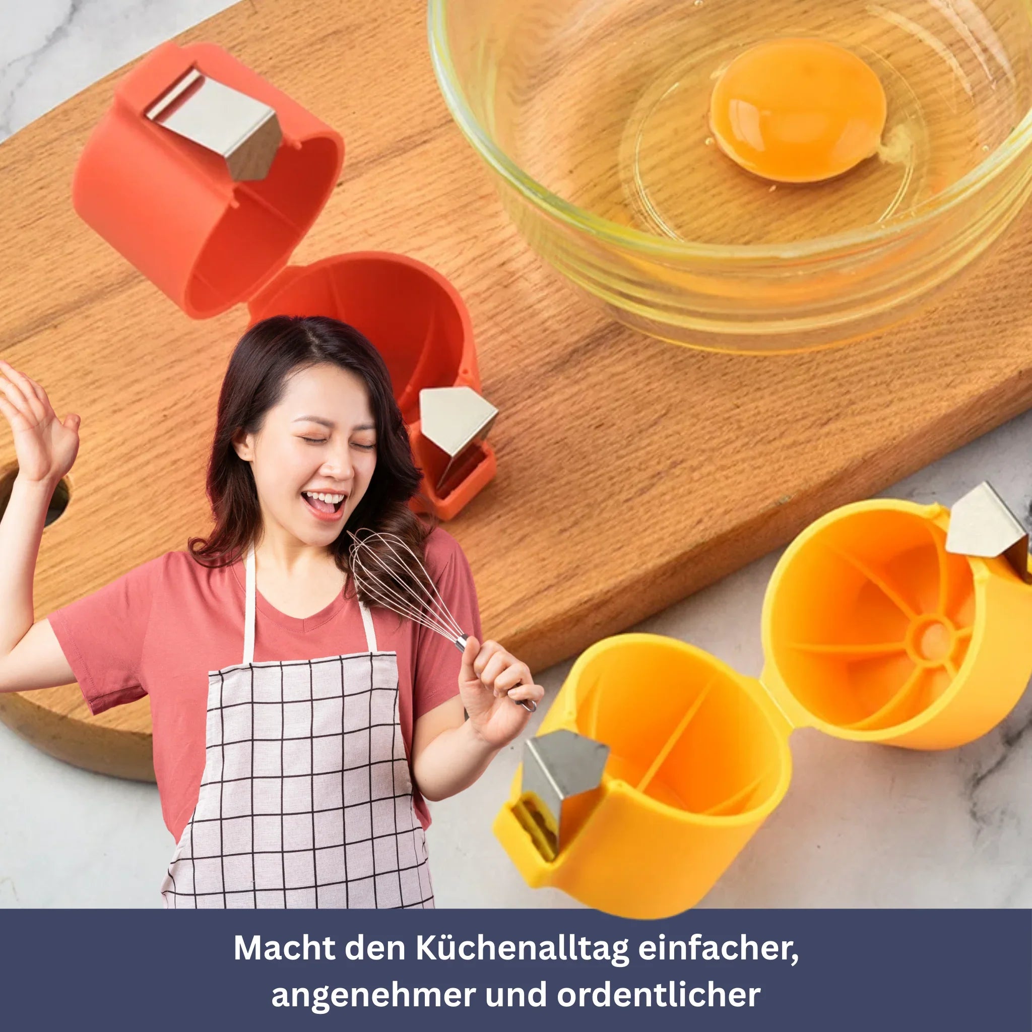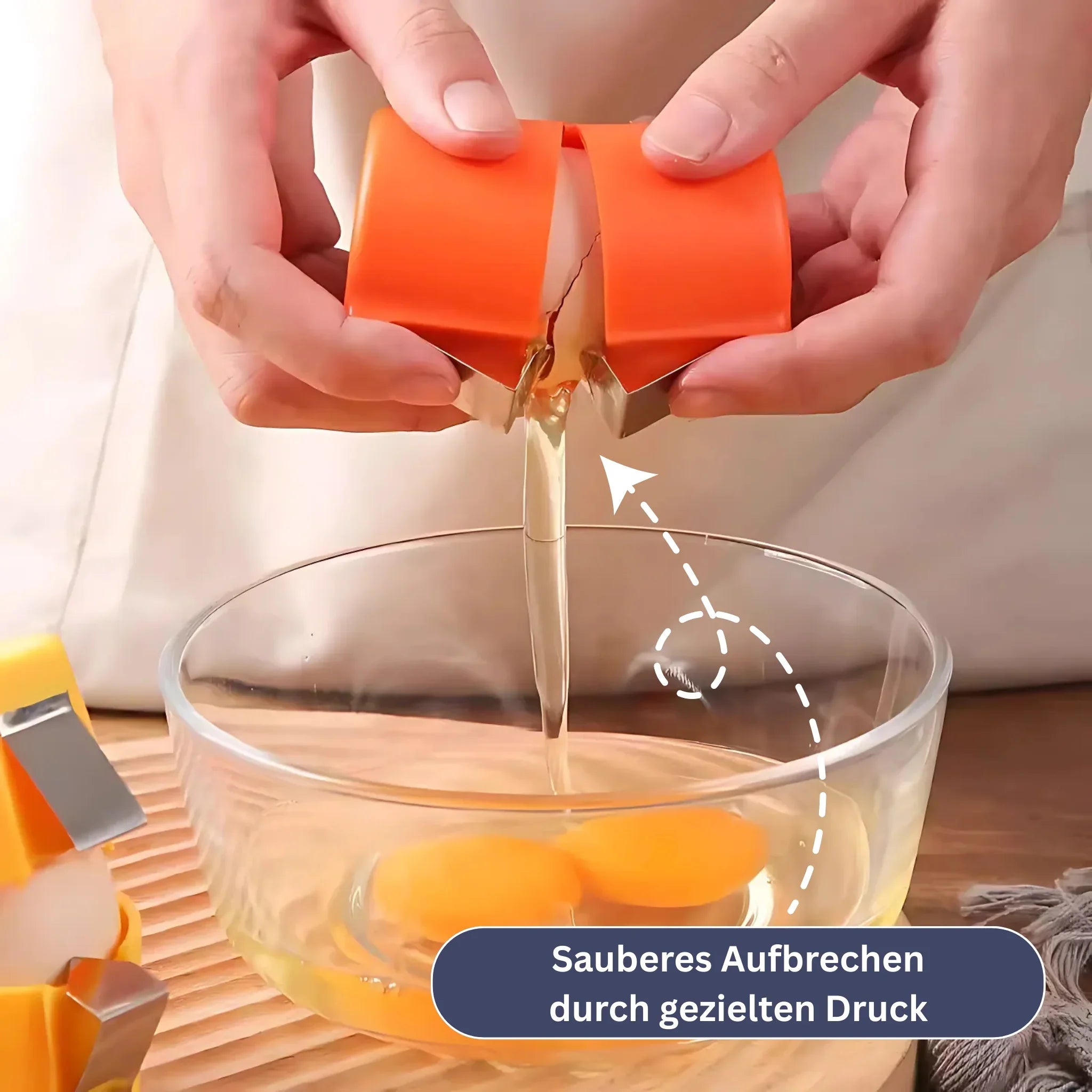Mit nur einem Handgriff öffnest du rohe Eierzuverlässig und hygienisch – ganz ohne klebrige Finger, Schalenreste oder unnötiges Herumkleckern.
