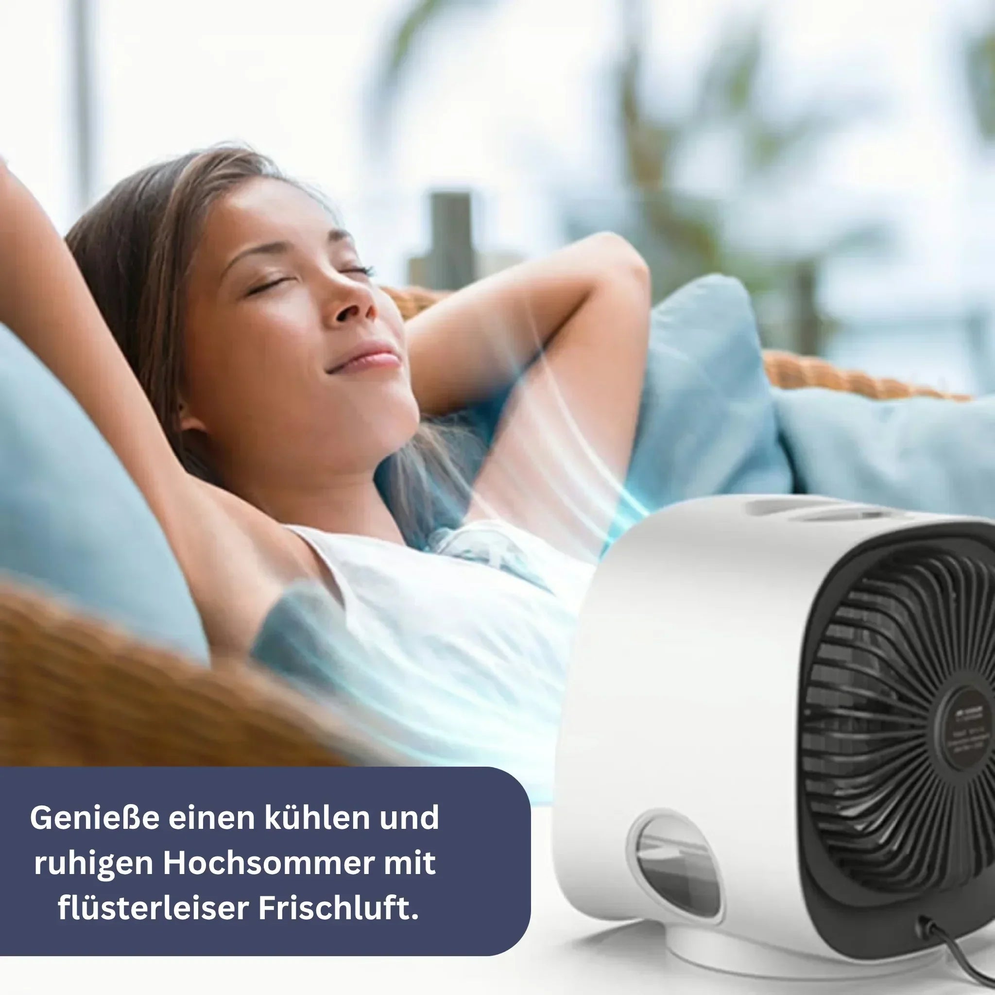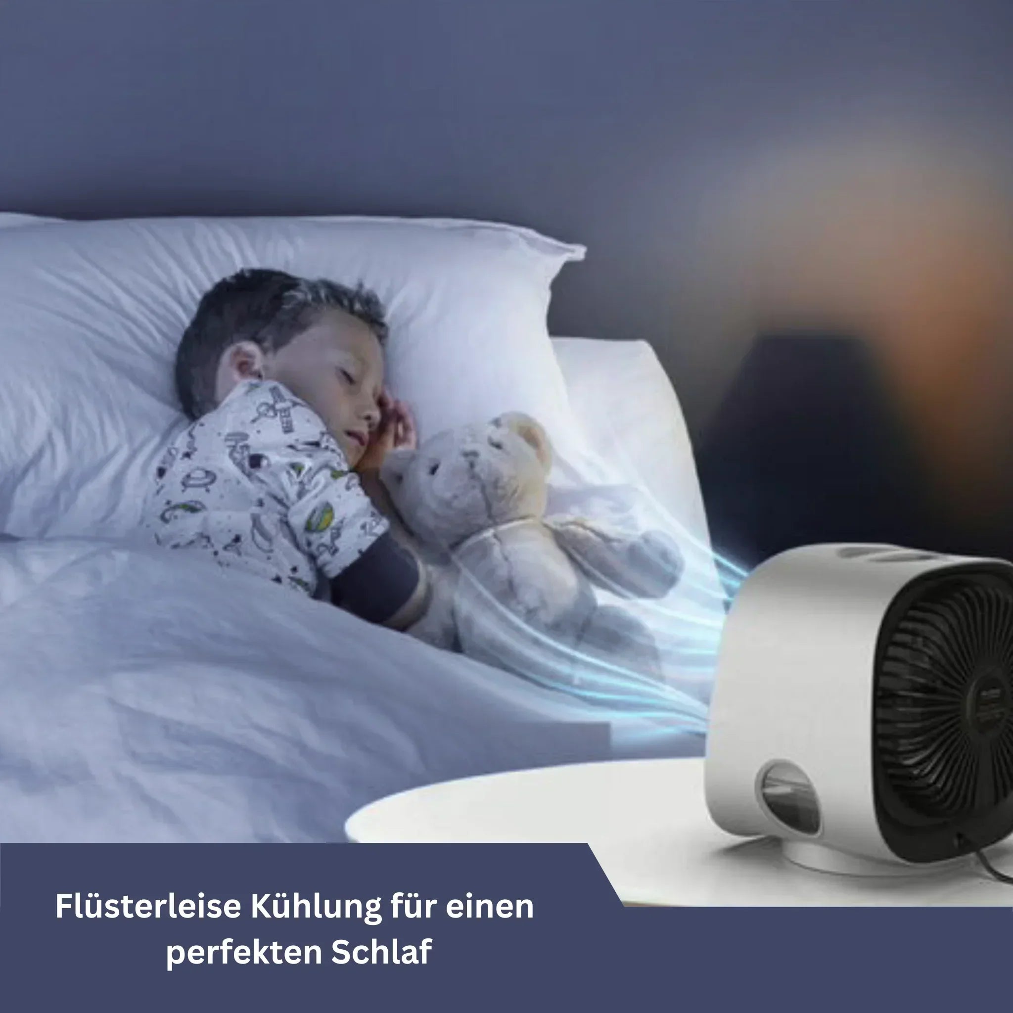 Der Mini-Luftkühler schafft die perfekte Umgebung für ruhigen, erholsamen Schlaf.