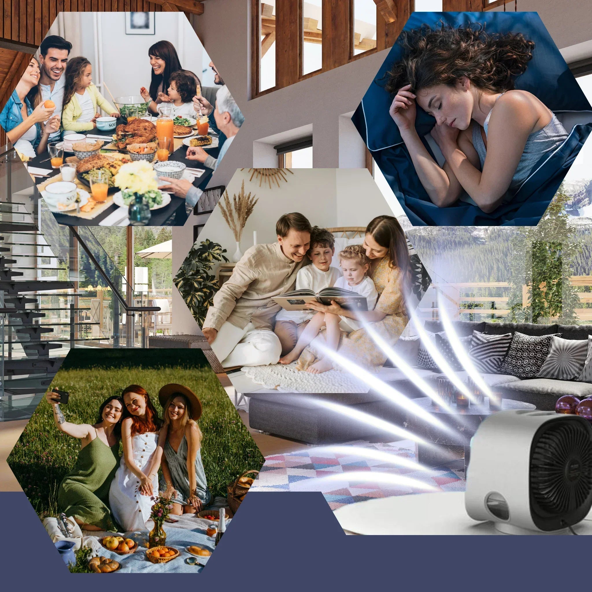 Simuliert frische Morgenluft in den Bergen – mit 3 Windstärken von sanftem Hauch bis kräftigem Luftstrom.
