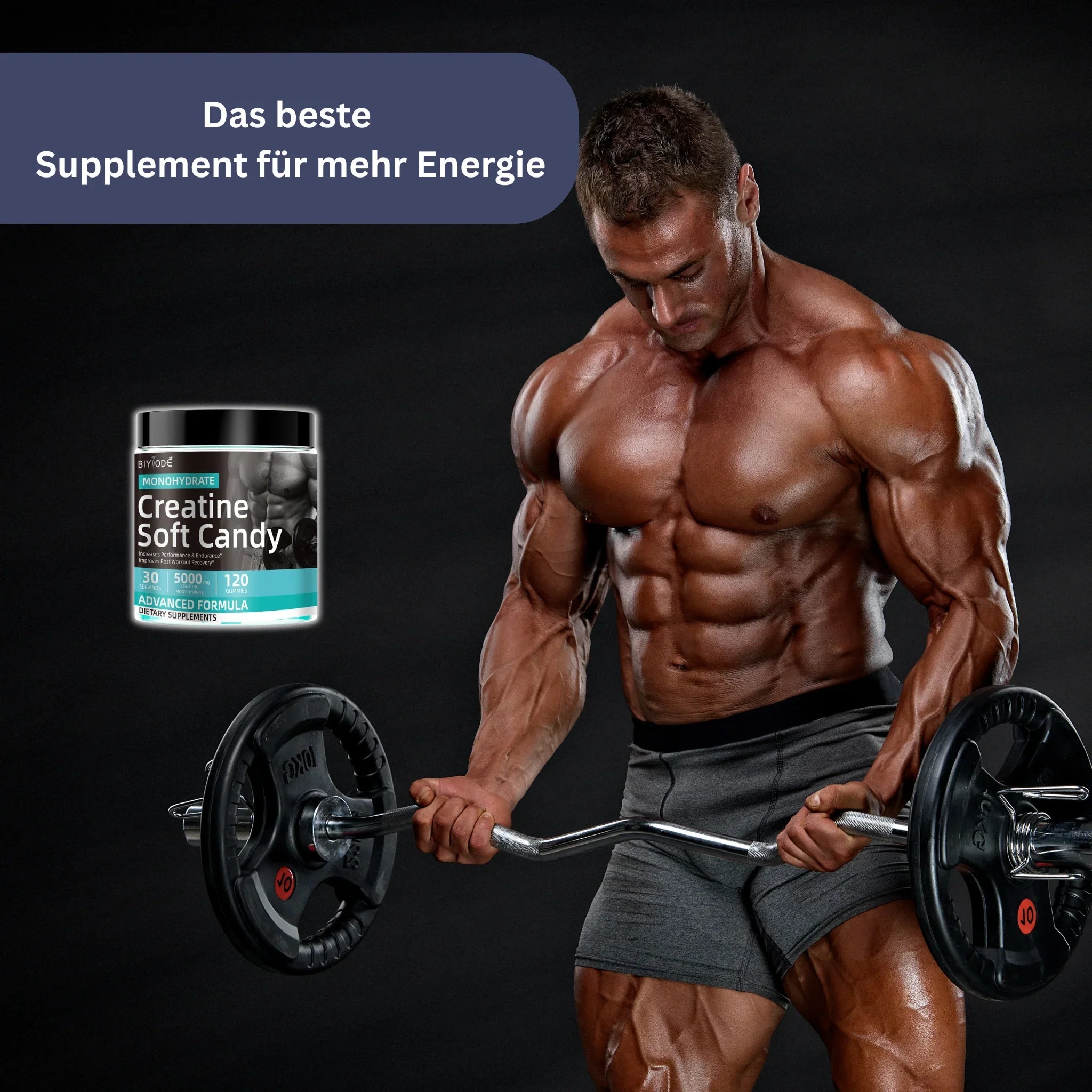 Kreatine Power Gummies enthalten reines Kreatin-Monohydrat, um deine Workouts zu boosten, deine Kraft zu steigern und die Muskelregeneration zu beschleunigen – und das alles in praktischer Gummibärchenform.