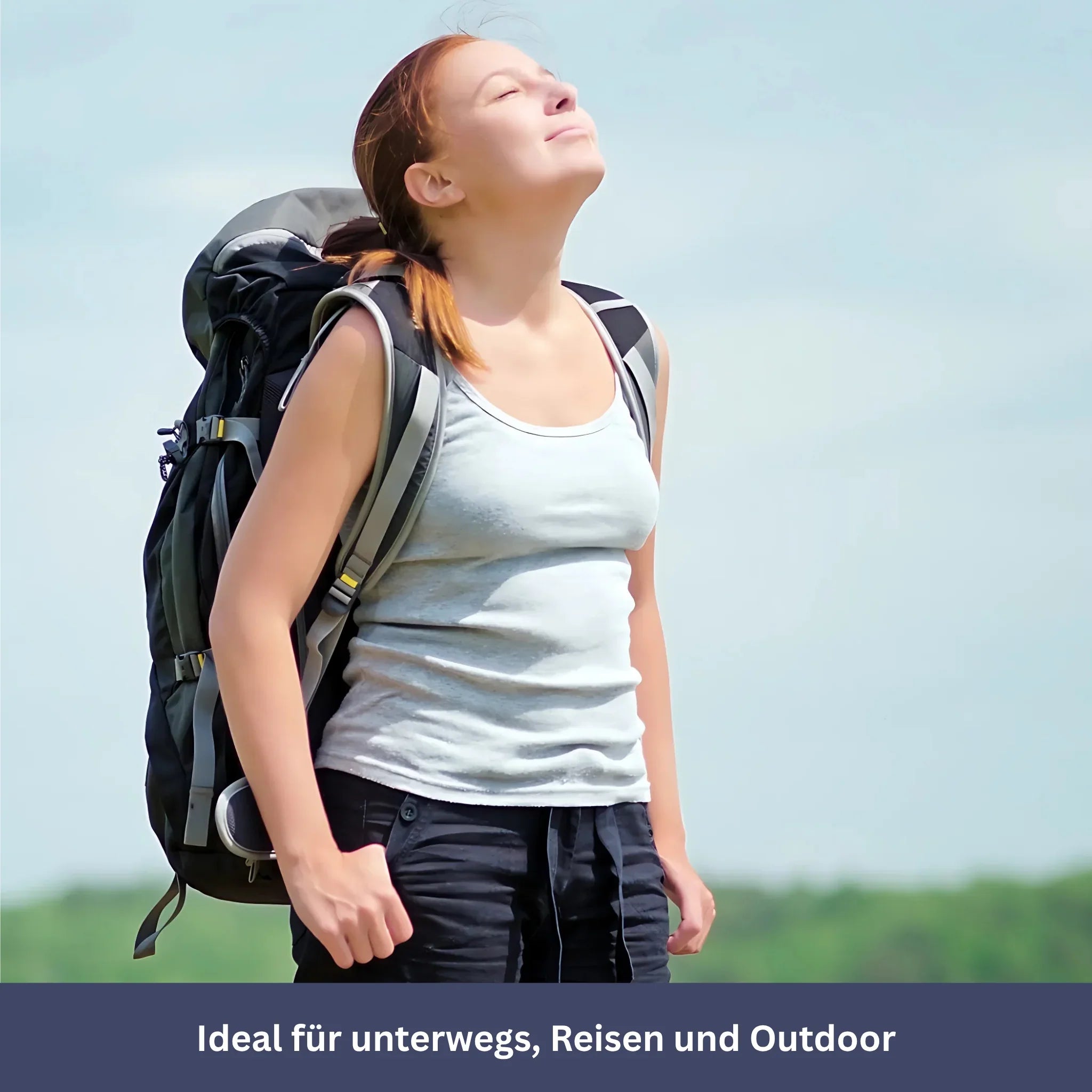 Ja, durch sein kompaktes Design passt er problemlos in jede Tasche und ist ideal für Reisen, Spaziergänge, Camping oder den Weg zur Arbeit.