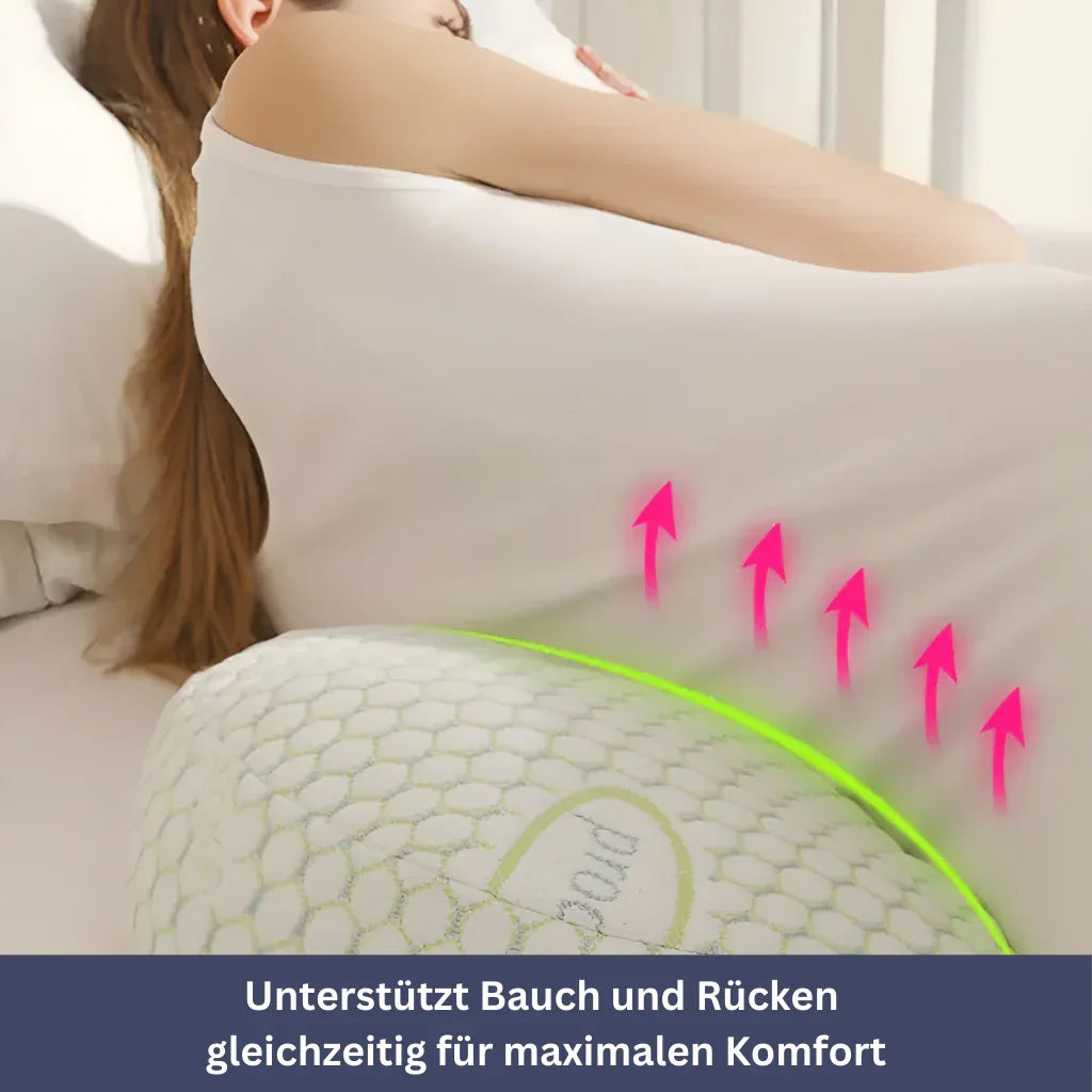 Das Kissen bietet durch sein U-förmiges Design gezielte Unterstützung für Bauch und Rücken.