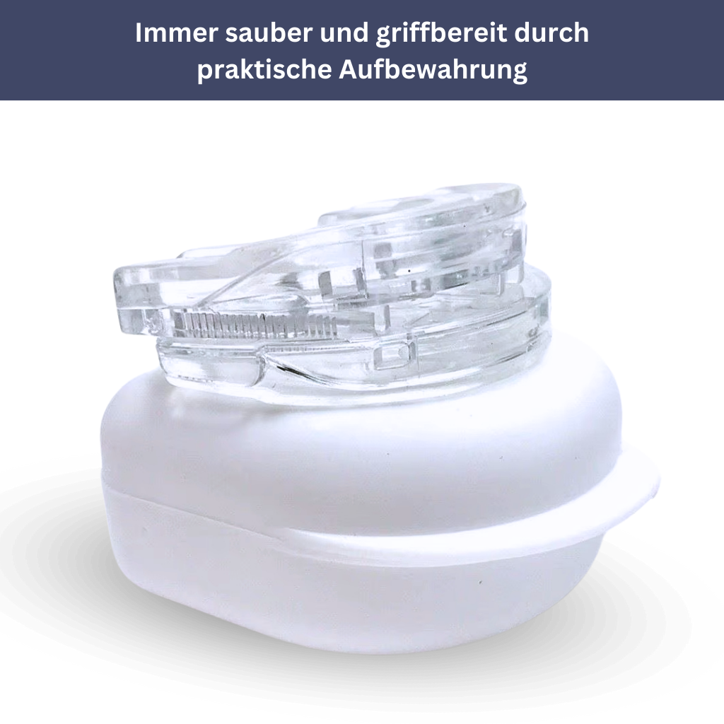 Dieses innovative Mundstück öffnet sanft die Atemwege, reduziert störendes Schnarchen und schützt gleichzeitig vor Zähneknirschen – für eine erholsame Nachtruhe und eine deutliche Verbesserung deiner Schlafqualität.