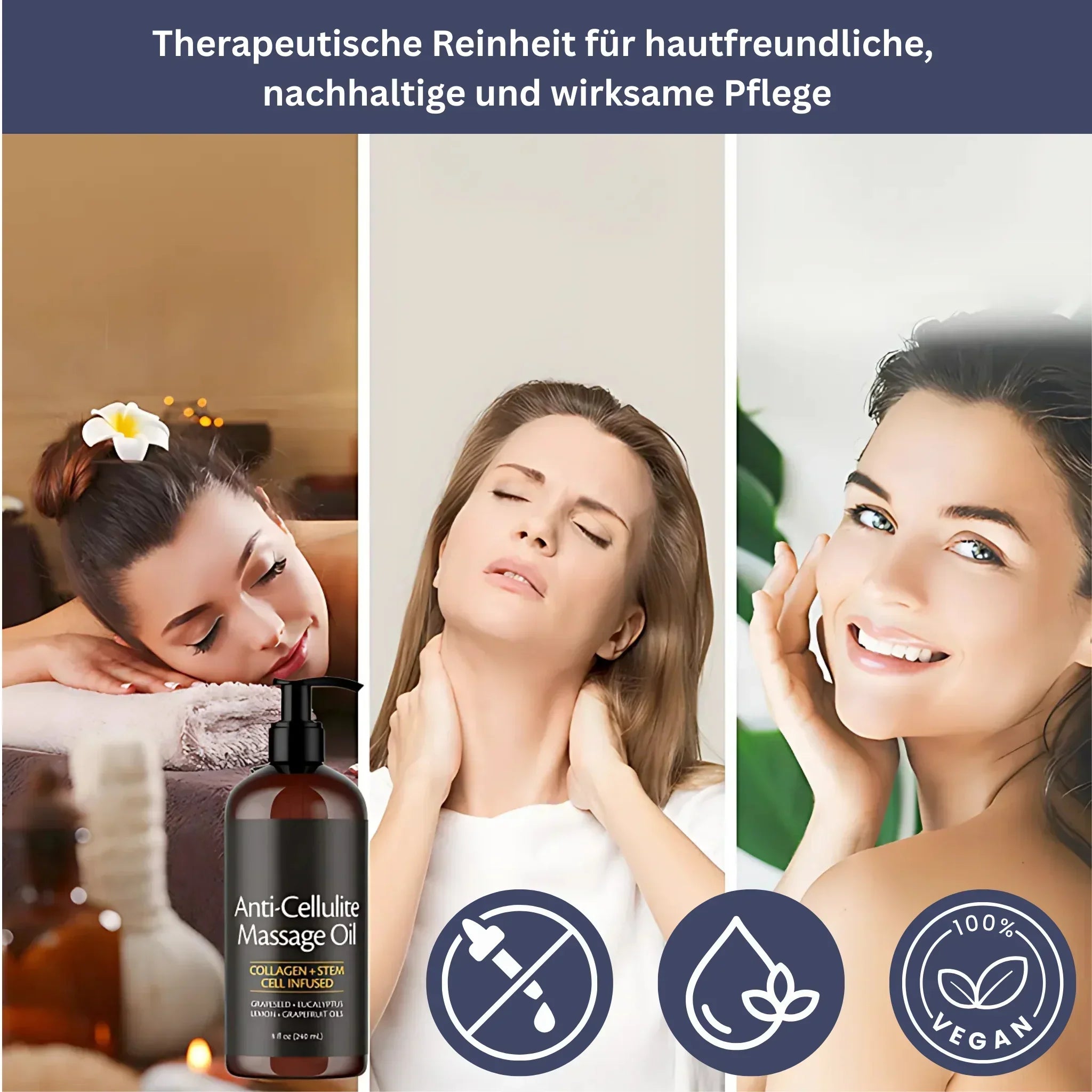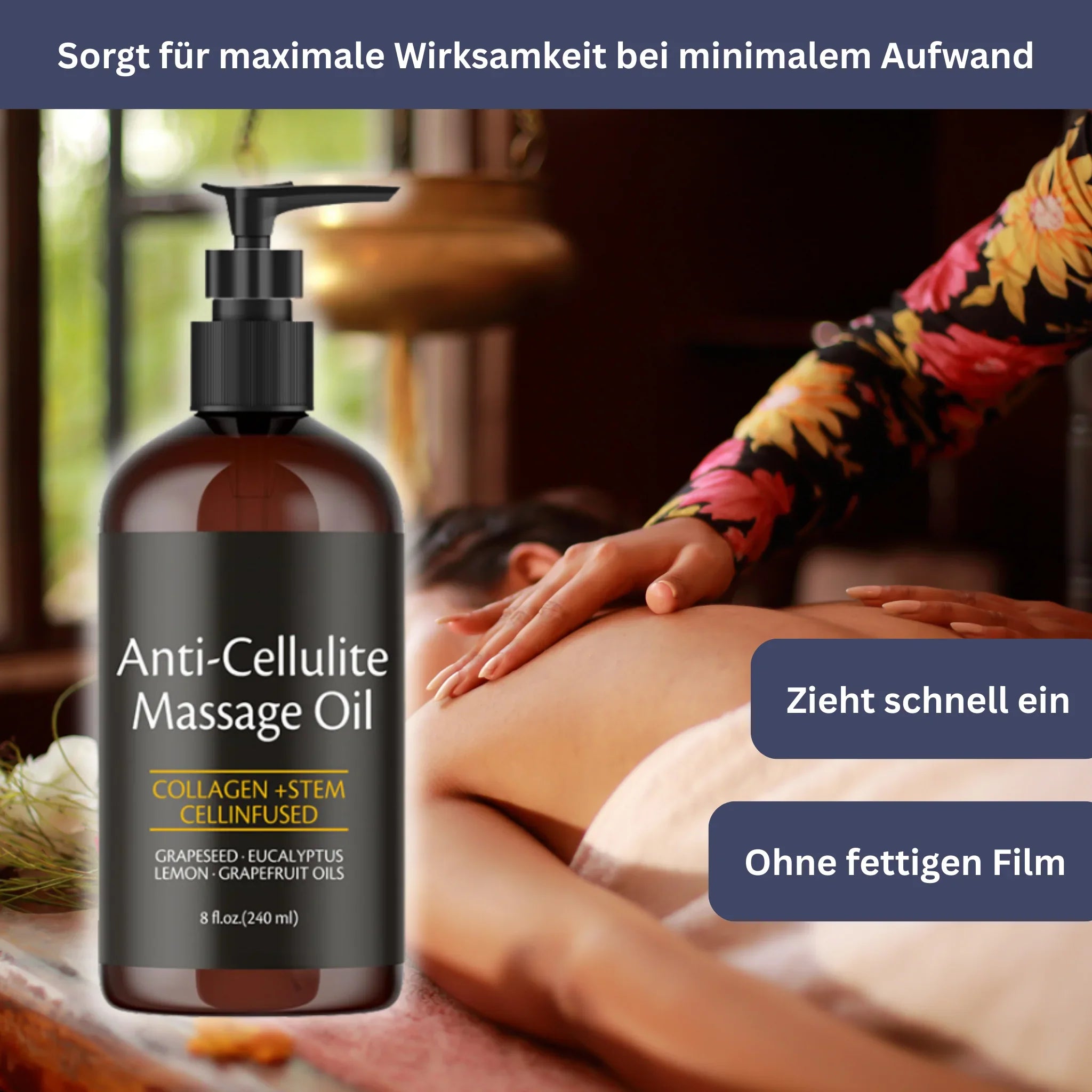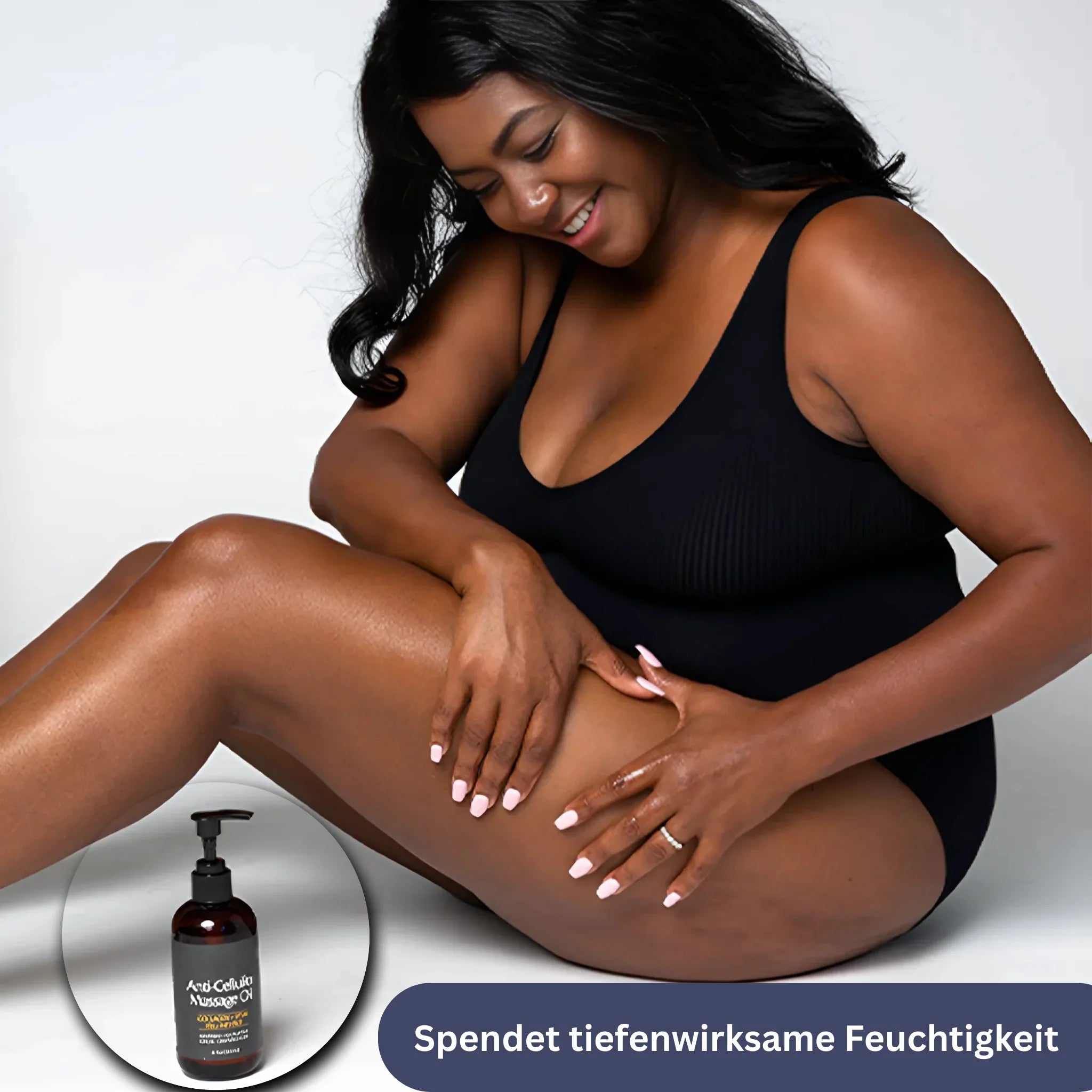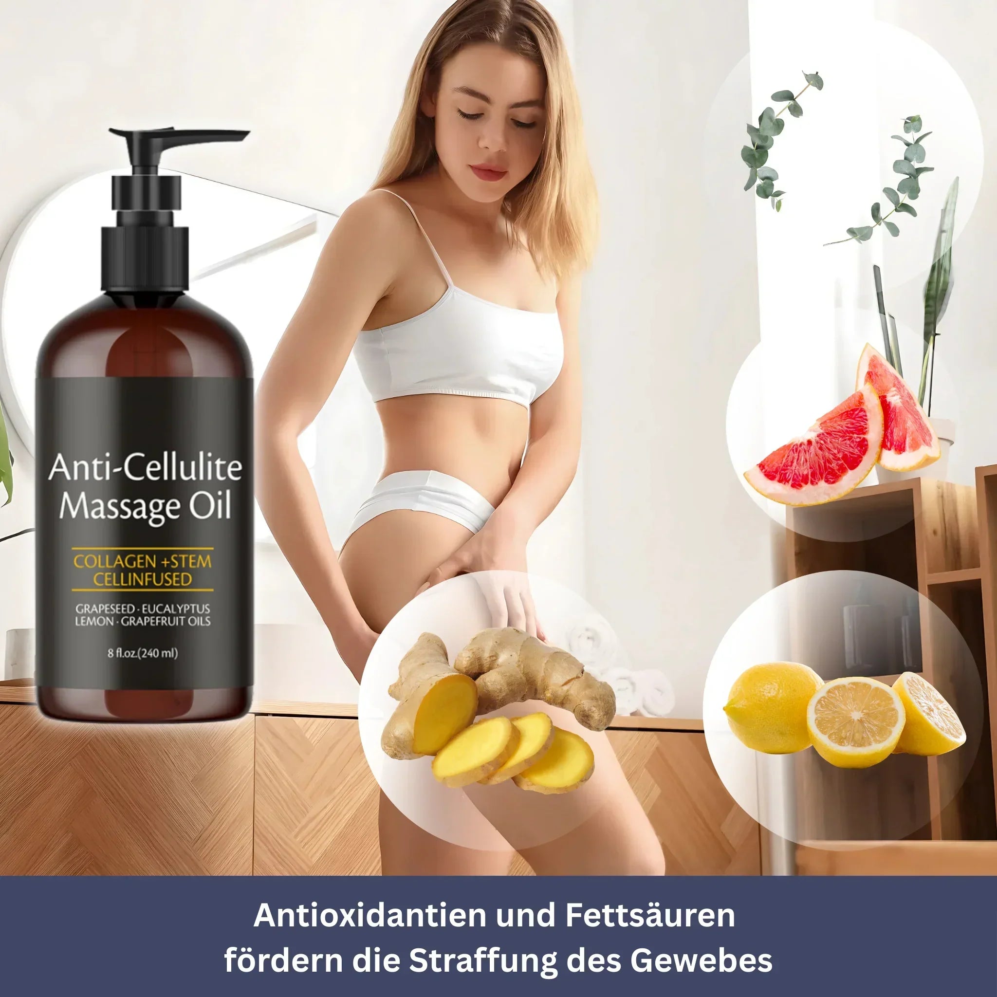Hochwertige ätherische Öle aus Zitrone, Eukalyptus und Grapefruit wirken gezielt gegen Cellulite an Hüften, Bauch, Oberschenkeln und Gesäß.